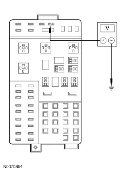 - Measure the voltage between input cavity of BJB fuse 24 (10A), circuit 186 (BN/LB) and ground.