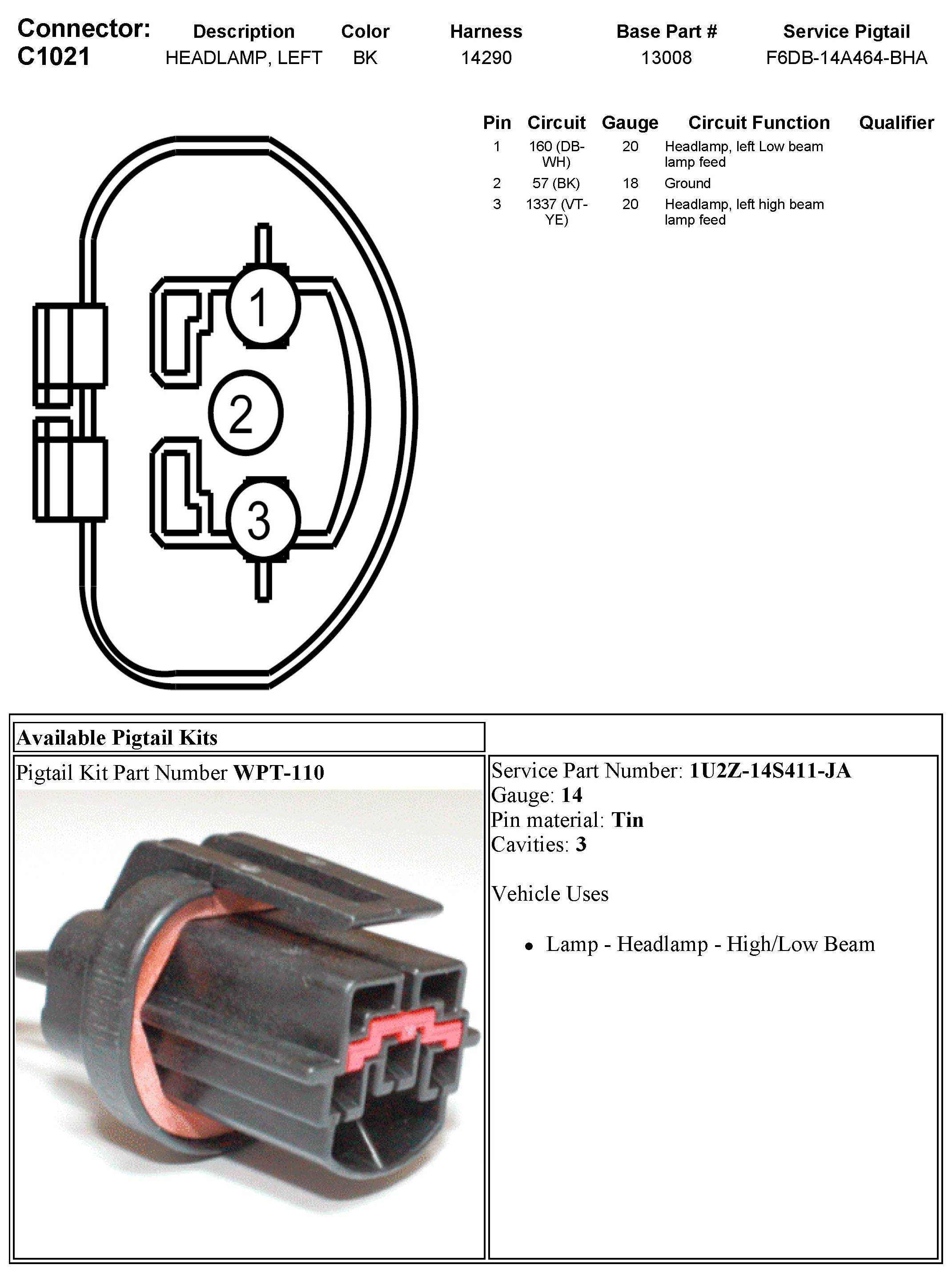 C1021 Headlamp, Left