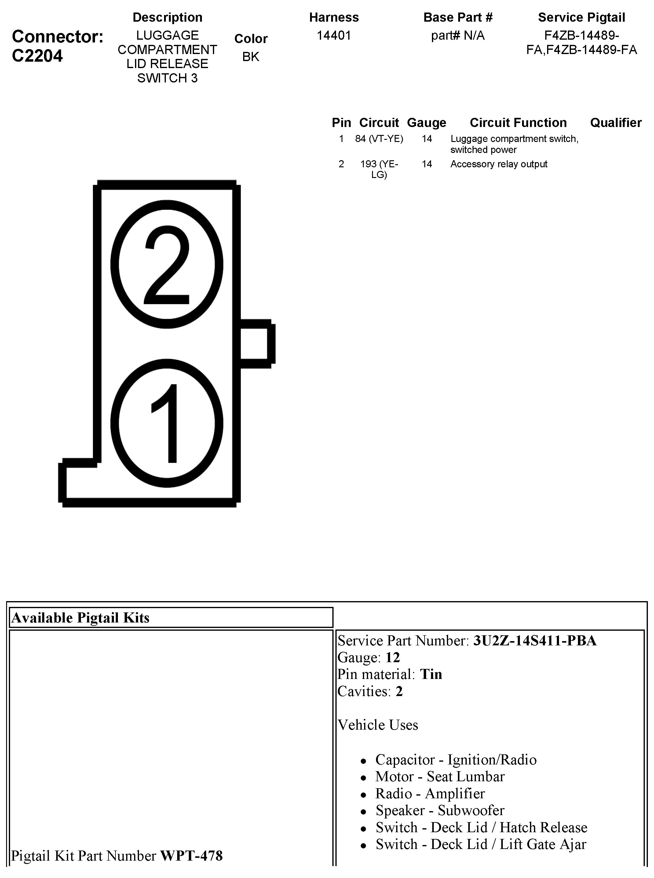 C2204 Luggage Compartment Lid Release Switch 3