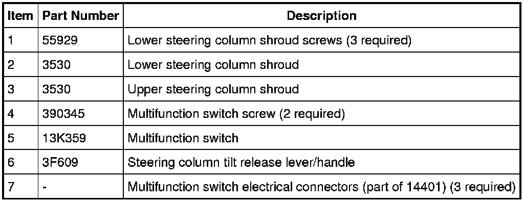 1. Remove the steering column tilt release lever/handle.