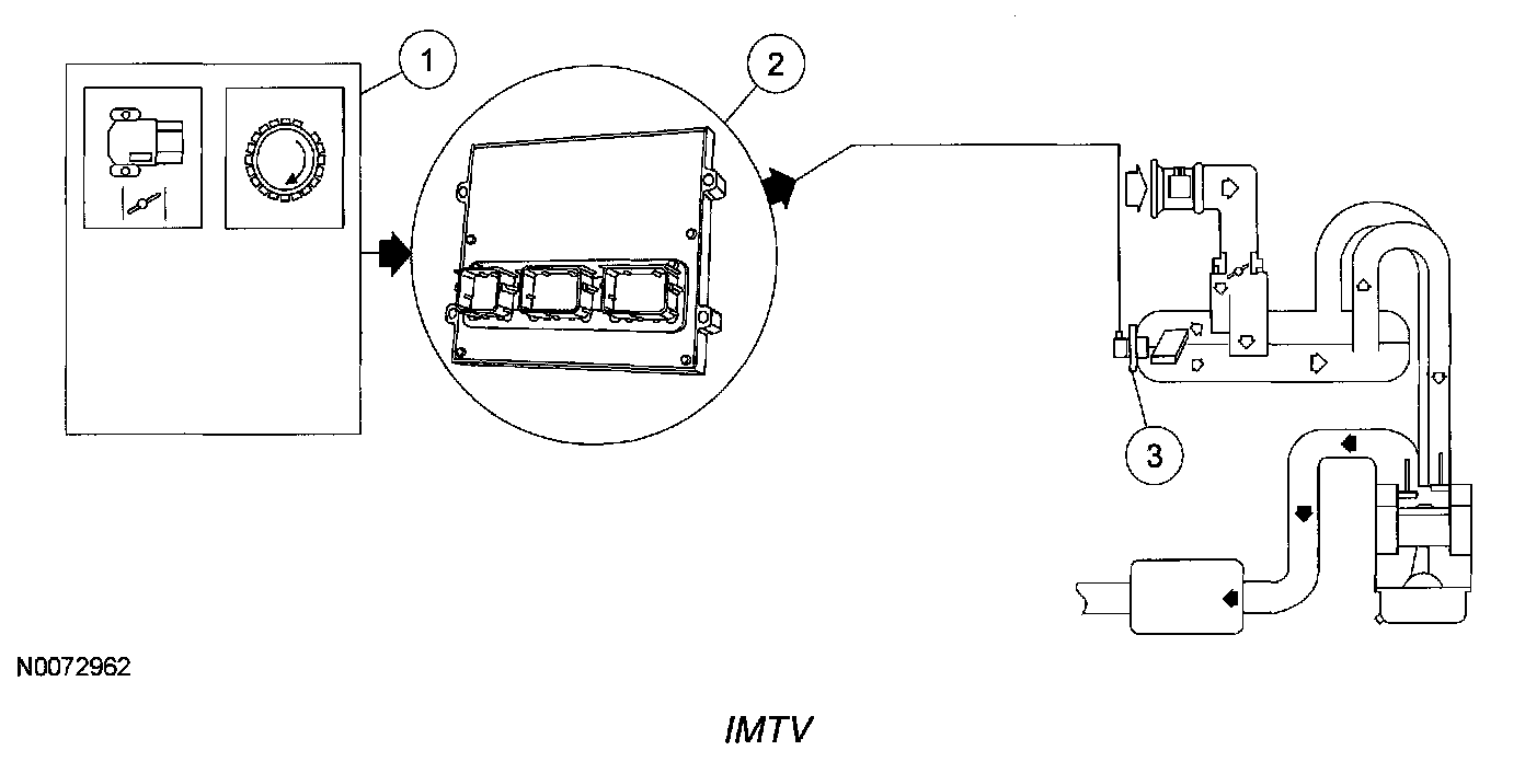 The IMTV is a motorized actuated unit mounted directly to the intake manifold. For additional information on IMTV components, refer to Engine Control Components.