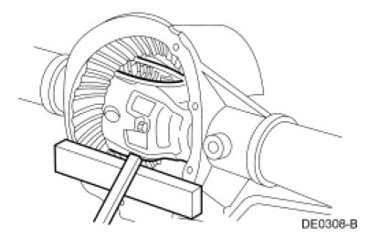 3. NOTE: Place a wood block between the pry bar and the axle housing to protect the machined surface from damage.