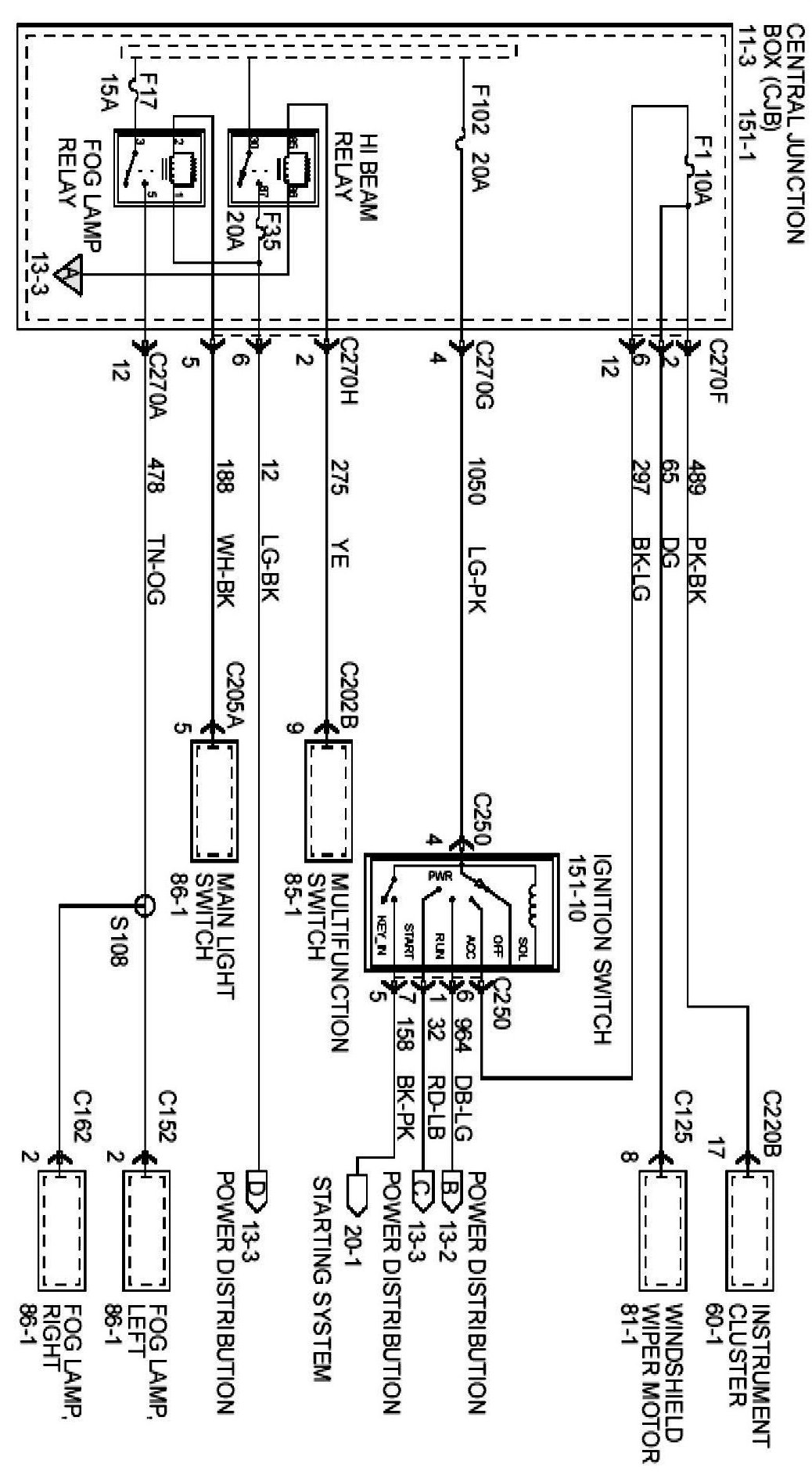 Ford Motor Company uses three different circuit numbering conventions: Standard Circuit Numbering System, Global Circuit Numbering System, and New Global Circuit Numbering System (NGCNS). With each, the circuit number (which identifies a specific circuit function) is followed by the wire color.
