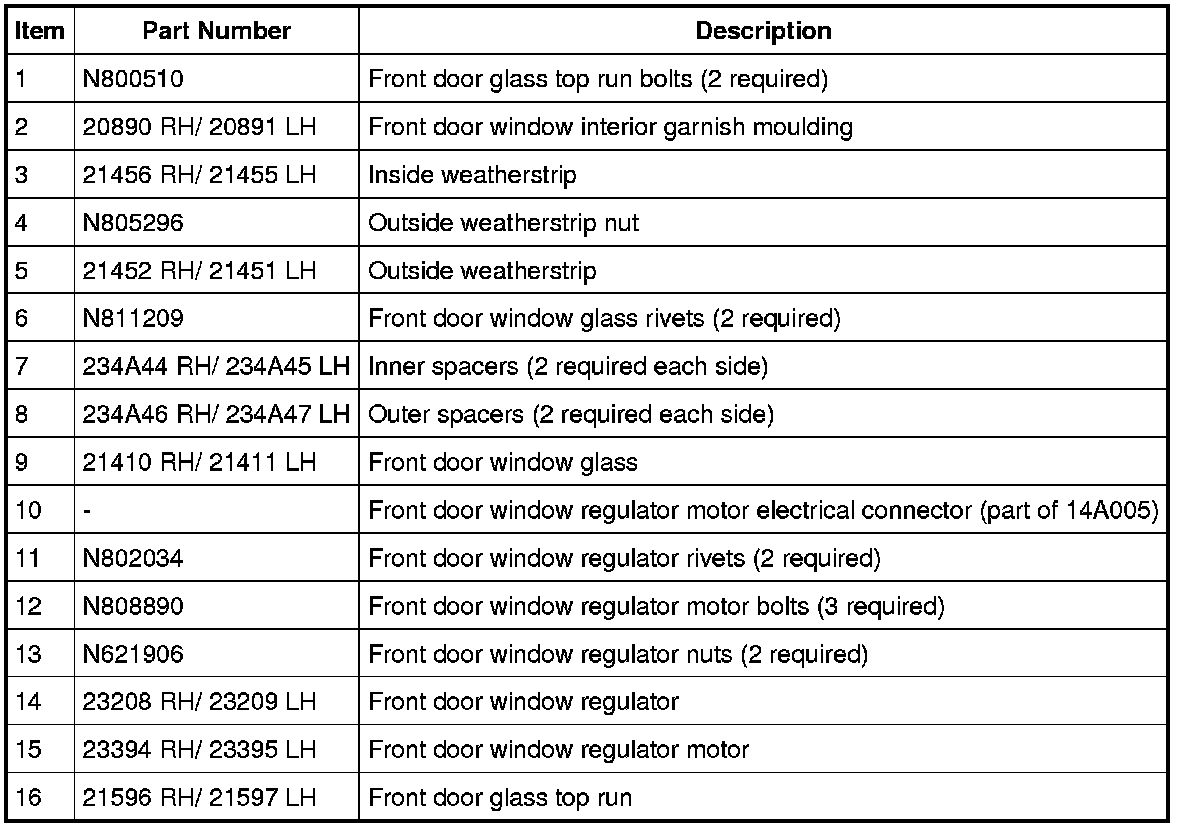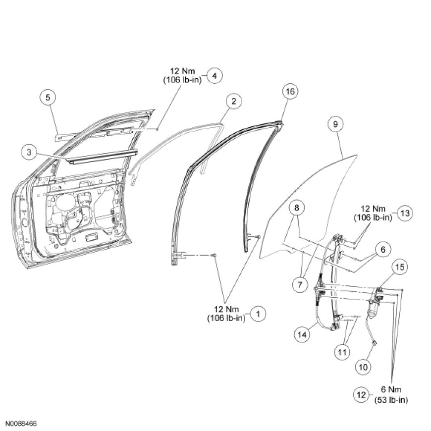 Glass, Frames and Mechanisms - Exploded View, Front Door