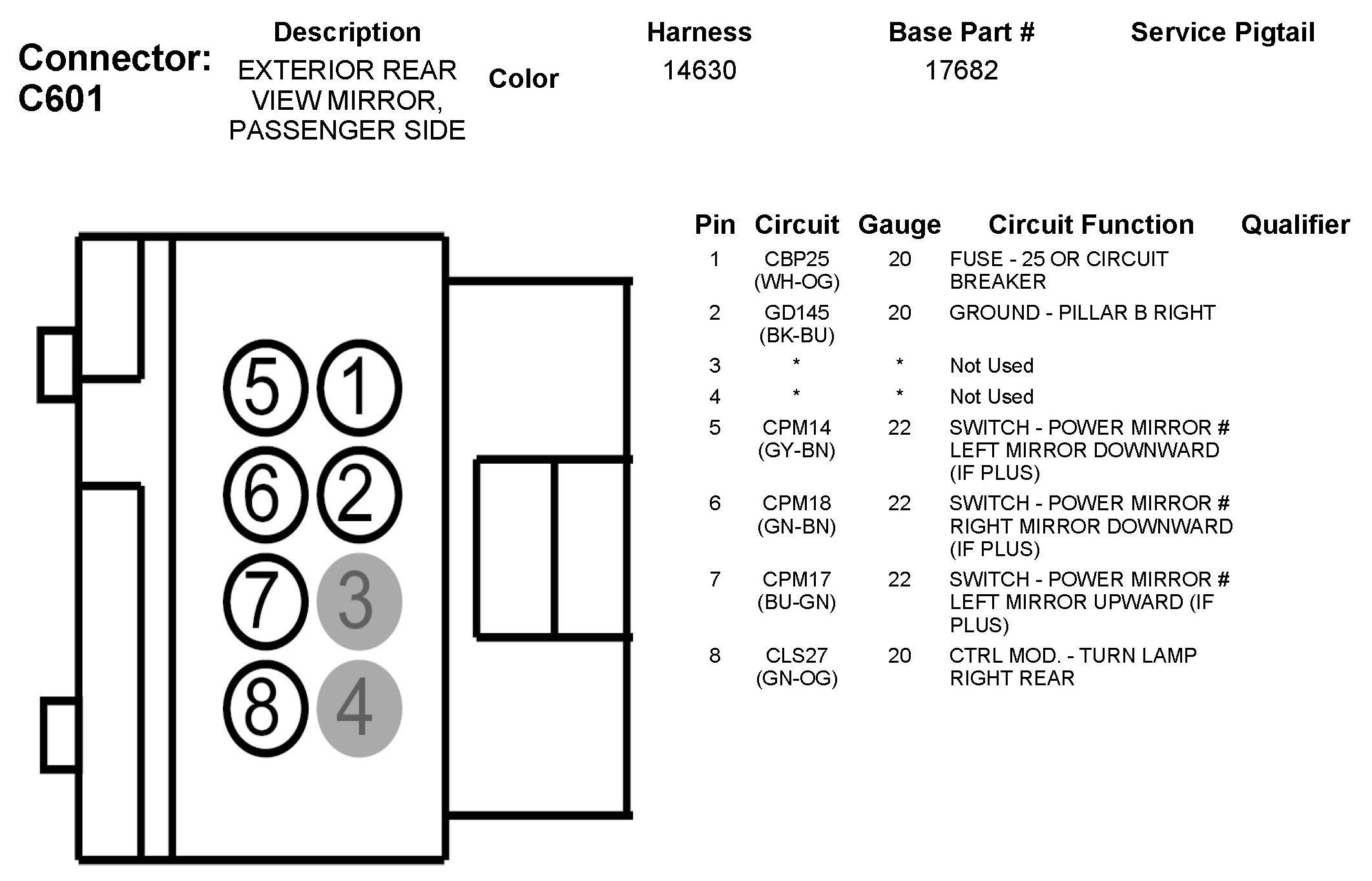 C601 Exterior Rear View Mirror, Passenger Side