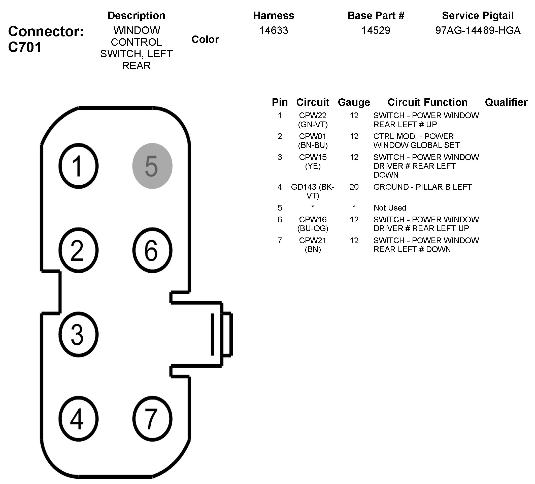 C701 Window Control Switch, Left Rear