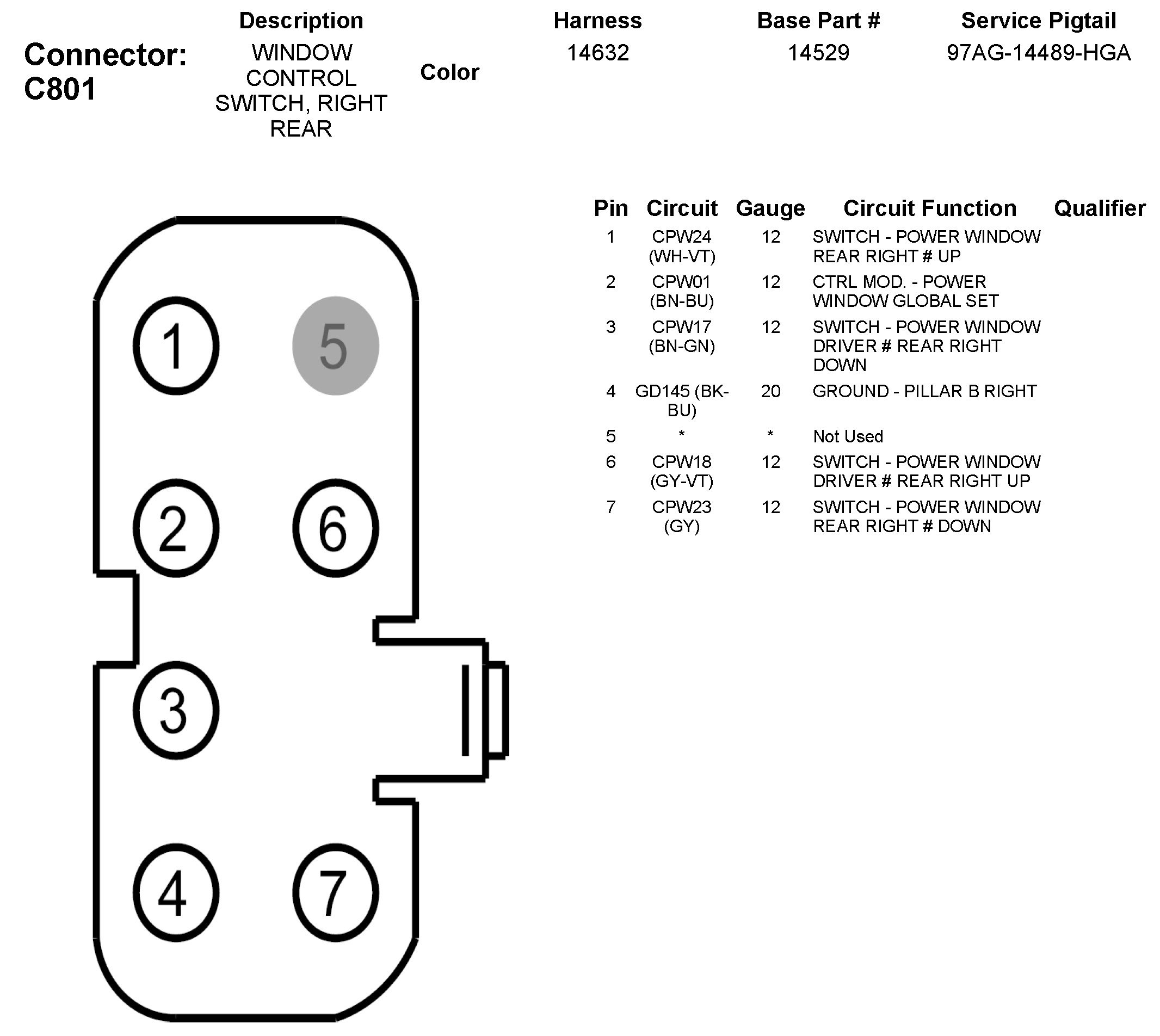 C801 Window Control Switch, Right Rear