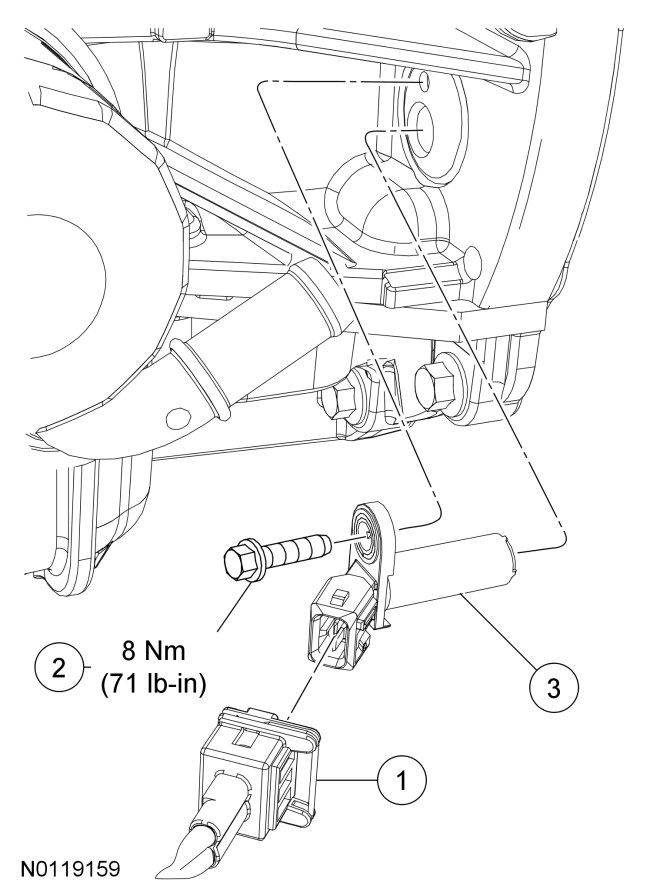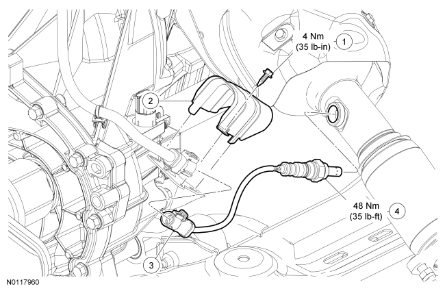 NOTE: The correct torque wrench setting must be calculated when using a commercially available exhaust gas sensor socket to install the HO2S.