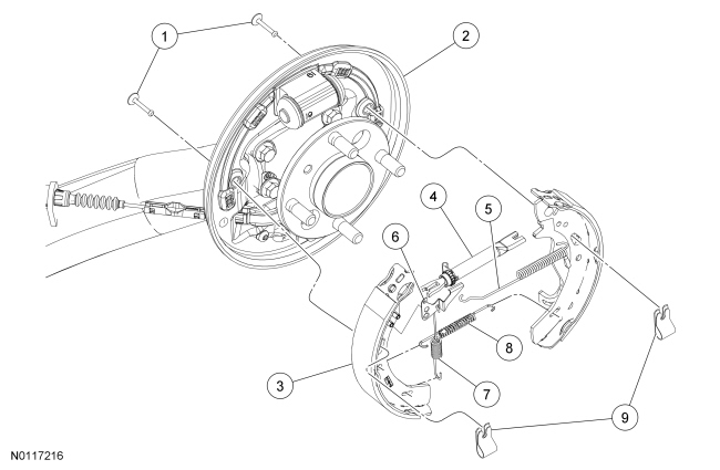 NOTE: If removing the the drum brake backing plate, the wheel hub and bearing must be removed. For additional information, refer to Rear Suspension Rear Suspension