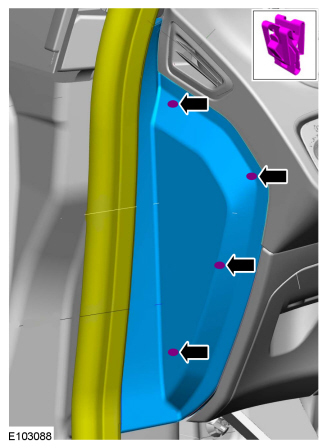 19. Remove the LH and RH A-Pillar trim panels. For additional information, refer to Interior Trim and Ornamentation A-Pillar Trim Panel.