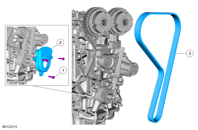 2. WARNING: The timing belt tensioner spring is under load. Extra care must be taken at all times when handling the tensioner. Failure to follow this instruction may result in personal injury.