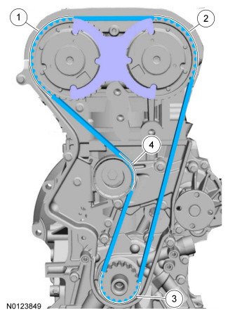 Install the timing belt in the sequence shown.