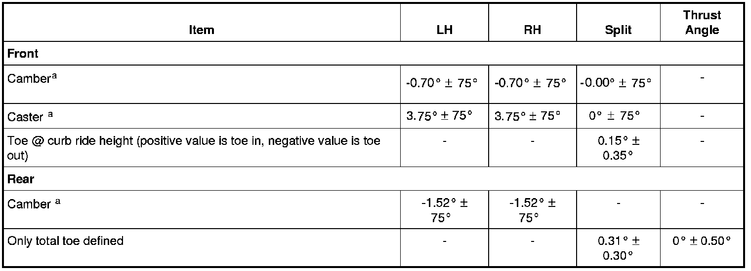 All alignment specifications are with the vehicle fuel tank full.