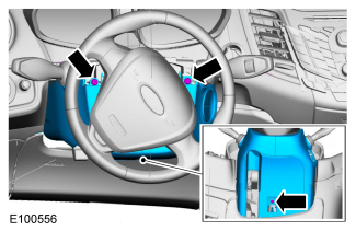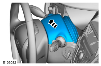 - Slide the upper steering column shroud out of the Instrument Cluster (IC) trim panel and remove the shroud.