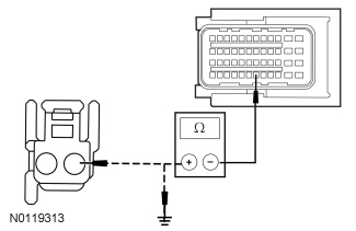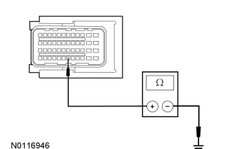 - Measure the resistance between PCM C175B-7, circuit CE903 (BU/OG), harness side and ground.