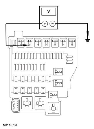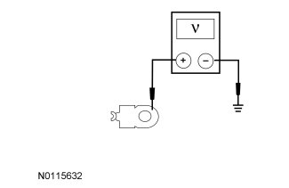 - Measure the voltage between Battery Junction Box (BJB) starter relay cavity 3, circuit SBB11 (BU/RD), harness side and ground.