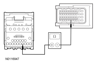 - Measure the resistance between RFA module C3503B-17, circuit CE903 (BU/OG), harness side and PCM C175B-7, circuit CE903 (BU/OG), harness side.