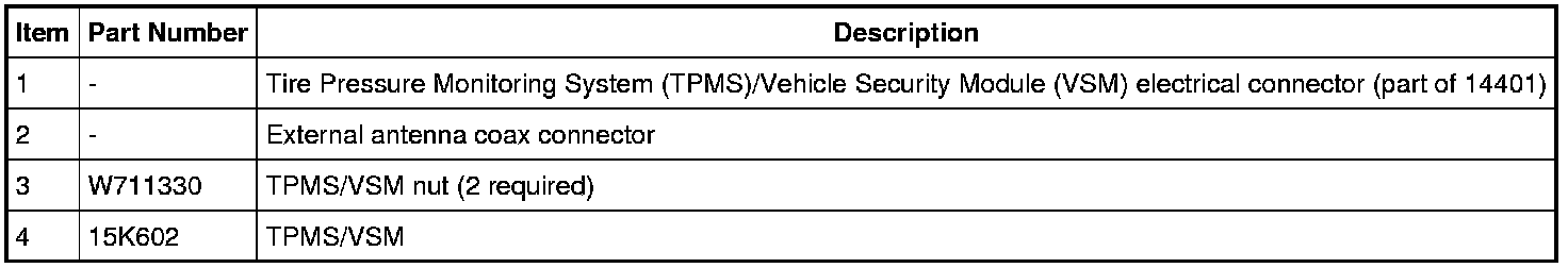 NOTE: The Tire Pressure Monitoring System (TPMS)/Vehicle Security Module (VSM) is also identified as the VSM.