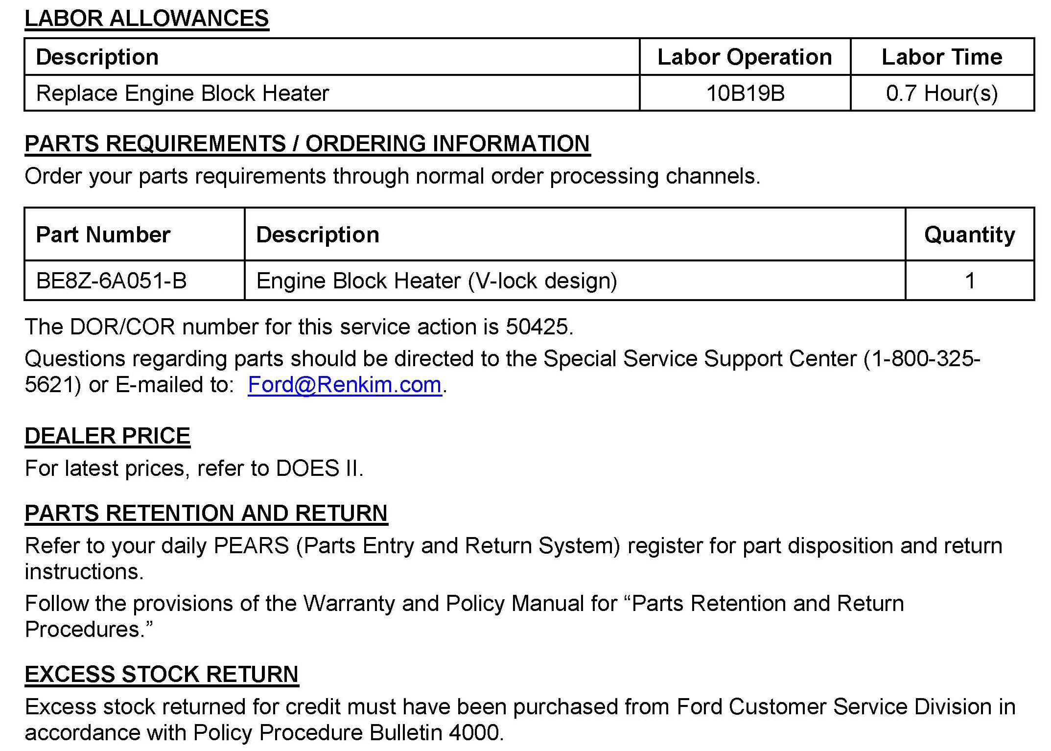 Campaign - Engine Block Heater Replacement