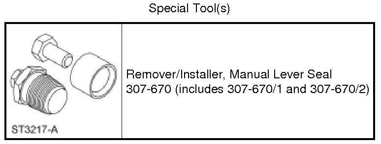 Using the special tool and a suitable tool, apply slight pressure to the special tool, remove and discard the manual control lever seal.