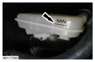 3. Drain the brake fluid reservoir to the MIN mark.