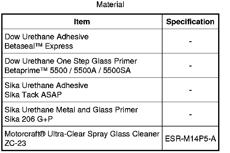 7. NOTE: Be sure to use the same brand and cure-rate products for the urethane adhesive and glass primer. Do not mix different brands of urethane adhesive and glass primer. Refer to the Material Chart in this procedure.