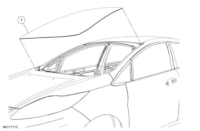 1. Remove the A-pillar trim panels. For additional information, refer to Interior Trim and Ornamentation A-Pillar Trim Panel.