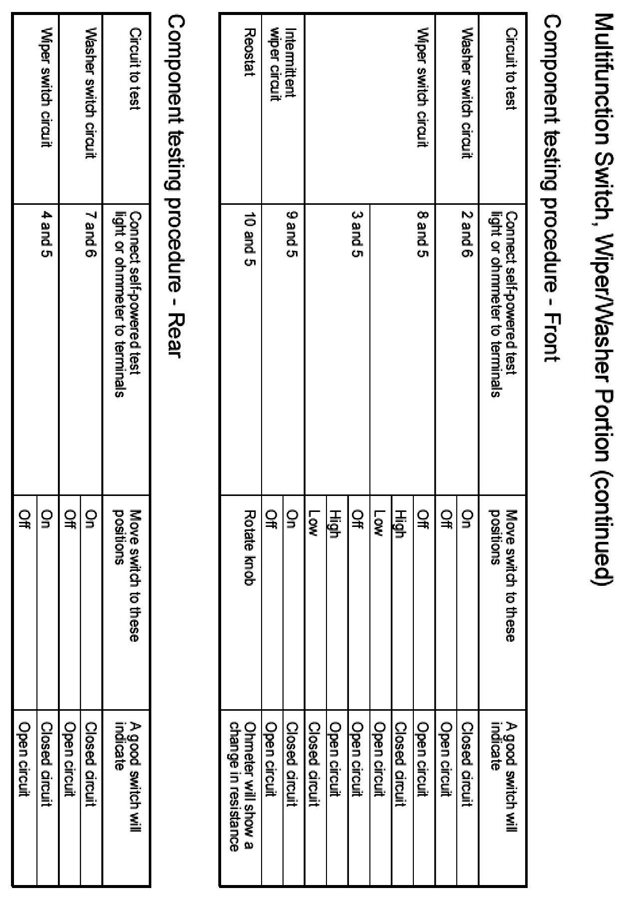 Windshield Washer Switch: Testing and Inspection