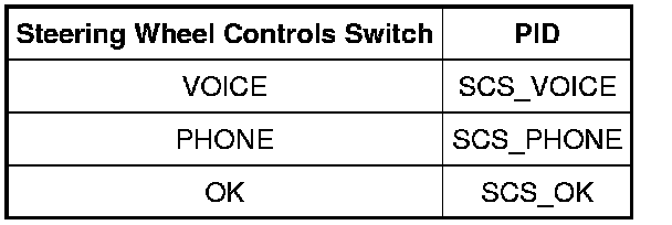 - Monitor the steering wheel controls PIDs while pressing each steering wheel controls button as follows: