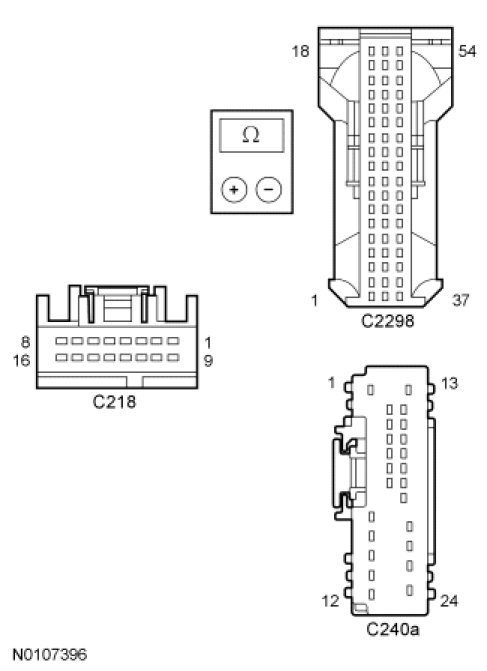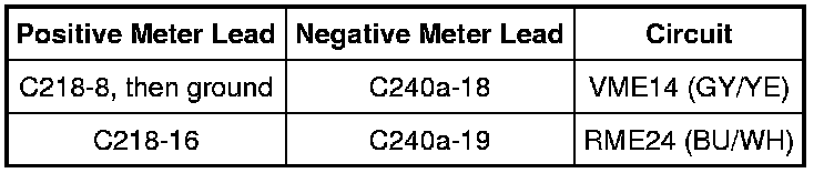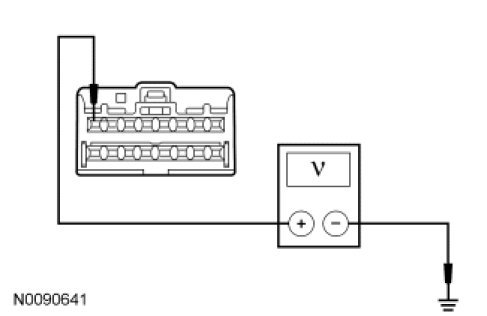 - For vehicles without the SYNC system, measure the voltage between the lower clockspring C218-8, circuit VME14 (GY/YE) and C218-16, circuit RME24 (BU/WH).