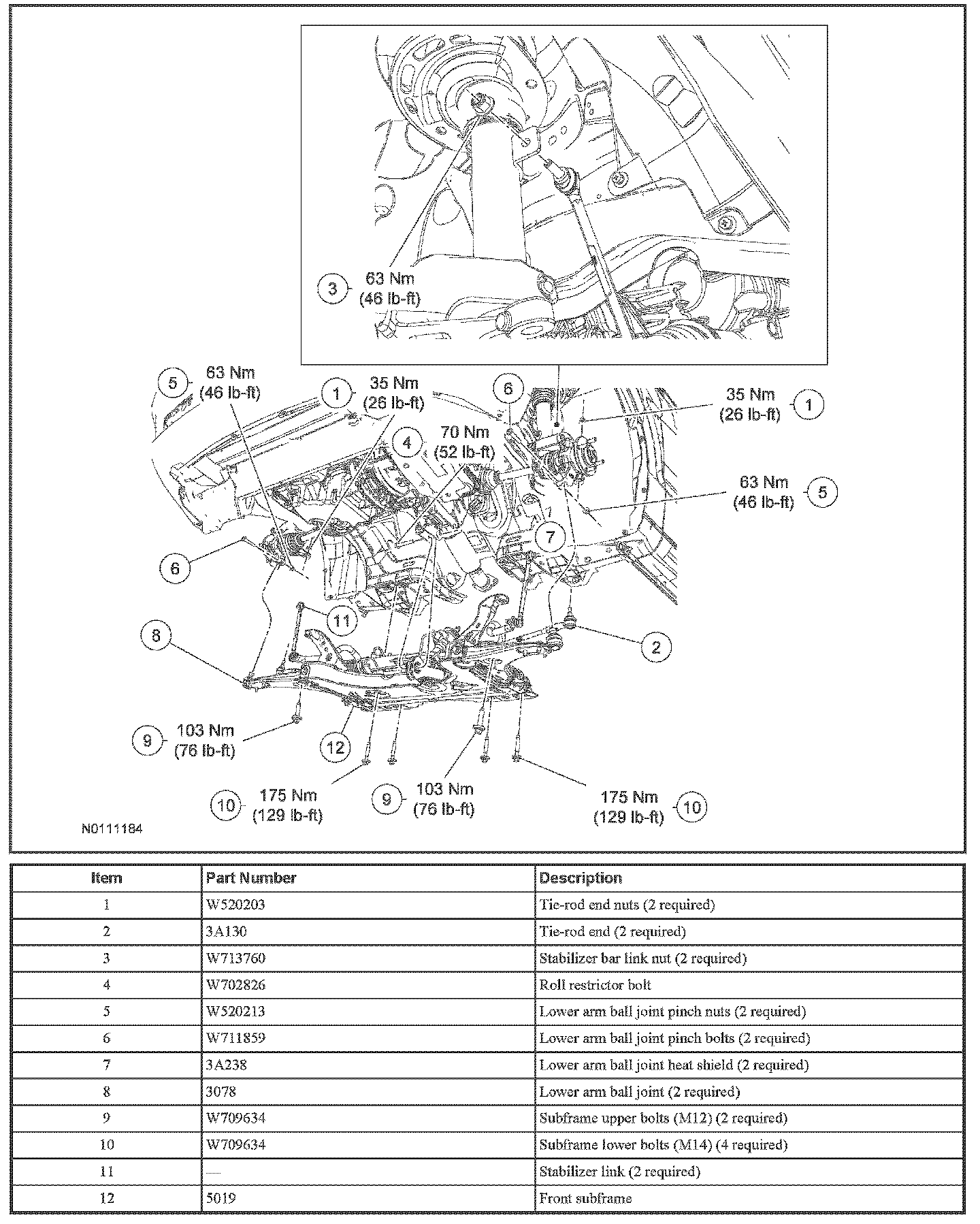 13. WARNING: Do not reuse a tie rod-to-wheel knuckle nut. This can result in nut failure and loss of steering control. Failure to follow this instruction may result in serious injury to vehicle occupant(s).
