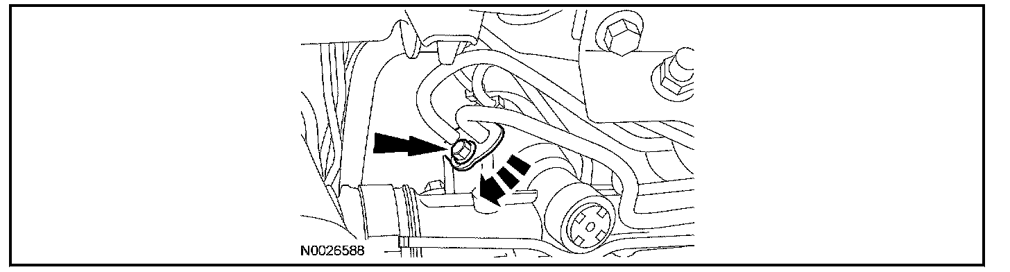10. Install the power steering line retainer bolt.