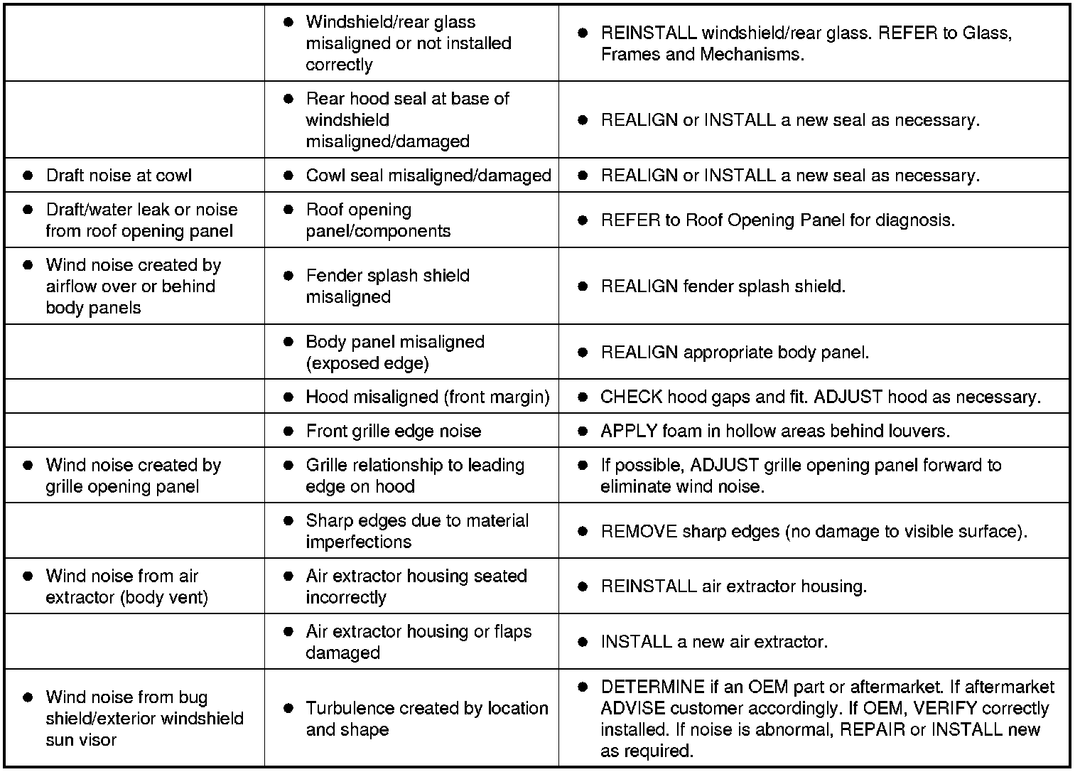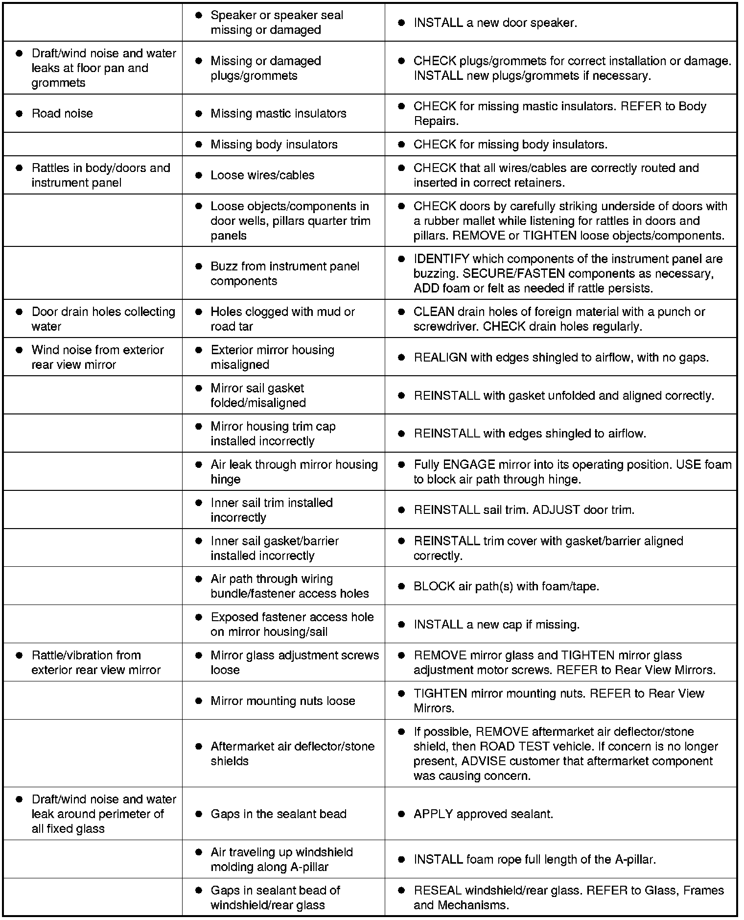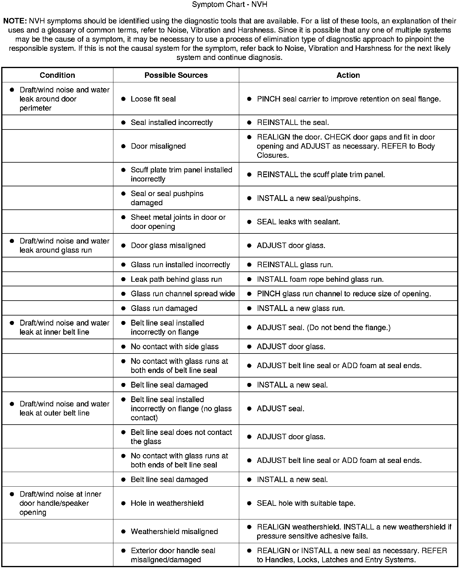 Symptom Chart - NVH