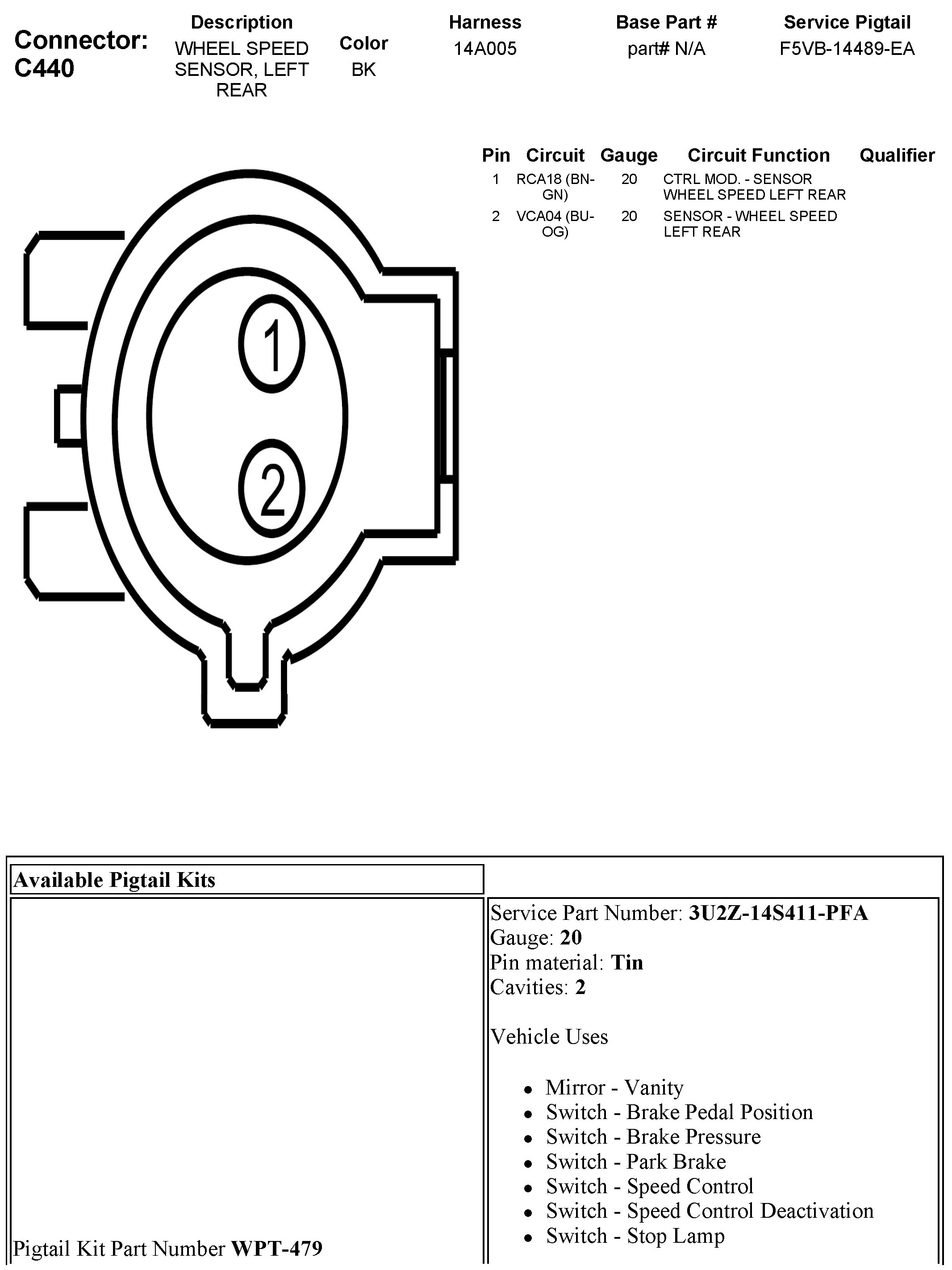 C440 Wheel Speed Sensor, Left Rear