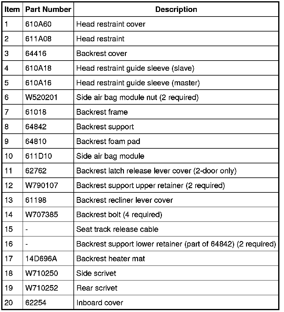 Seat - Exploded View, Front