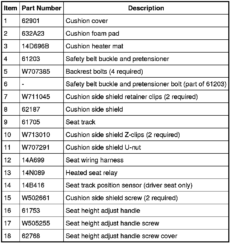NOTE: LH seat with 4-way seat track shown, 2-way similar. For RH seat cushion Occupant Classification Sensor (OCS) system components, refer to Supplemental Restraint System Service and Repair.
