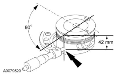 diameter 90 degrees from the piston pin and 42 mm (1.65 in) down from the top of the piston at the point indicated.