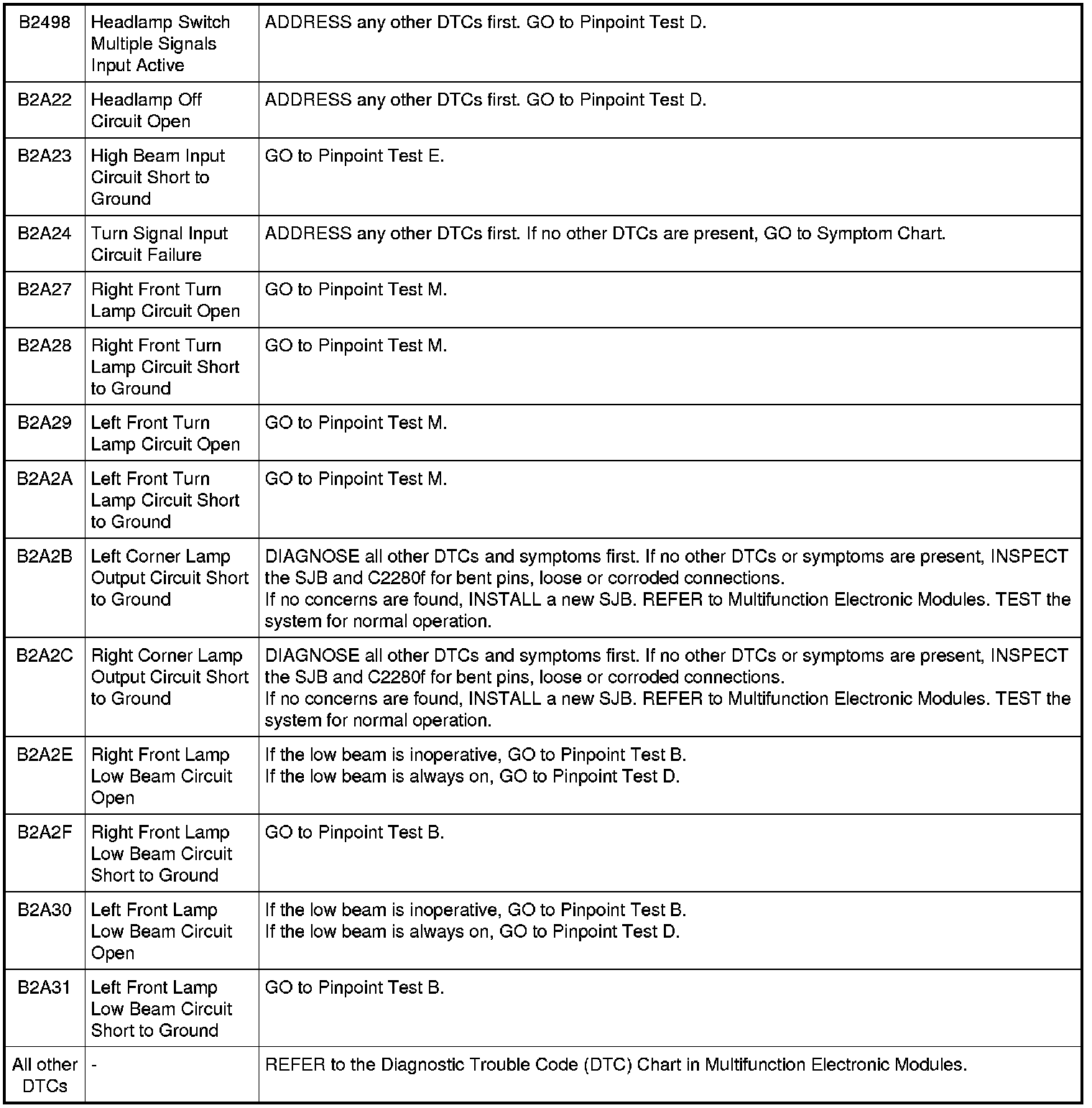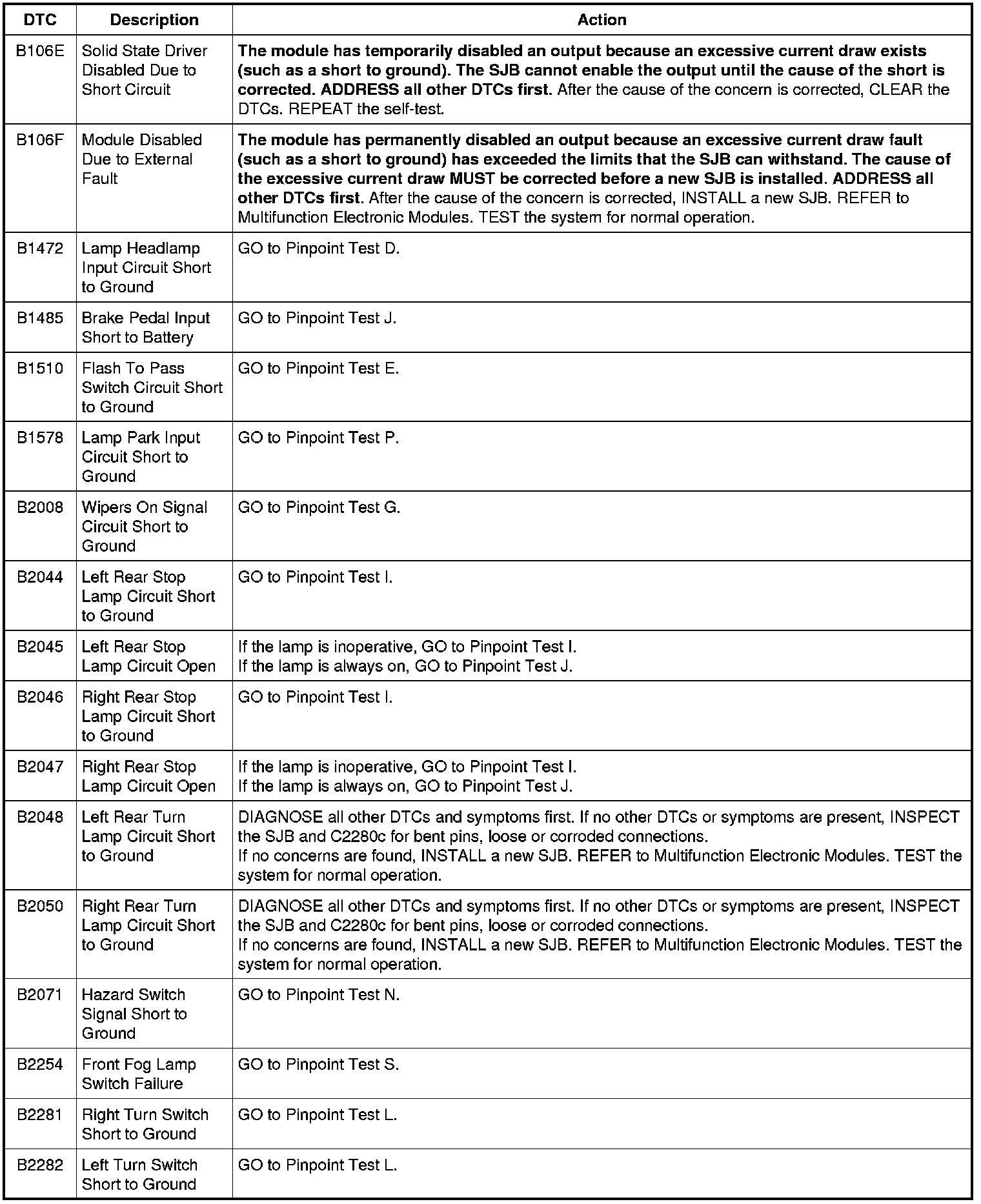 Smart Junction Box (SJB) DTC Chart