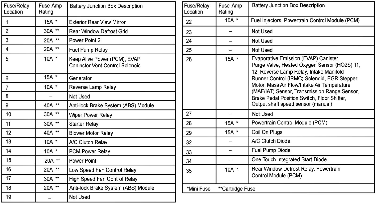 ALLDATA Editor's Note: Ford identifies this one component by 2 different names. Users have reported success comparing these images to determine Application/ID or Location of Fuses and Relays with the Power Distribution Box / Battery Junction Box (BJB).