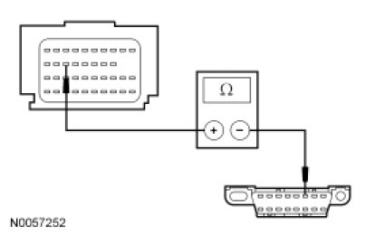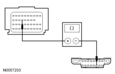 - Measure the resistance between the RCM C310b-17, circuit VDB05 (WH), harness side and the DLC C251-14, circuit VDB05 (WH), harness side.