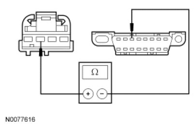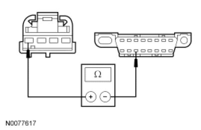- Measure the resistance between the FCIM C2402-4, circuit VDB07 (VT/OG), harness side and the DLC C251-11, circuit VDB07 (VT/OG), harness side.
