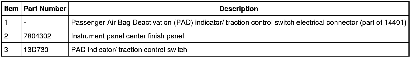 NOTE: The Passenger Air Bag Deactivation (PAD) indicator is part of the Hazard/ Traction control switch assembly.