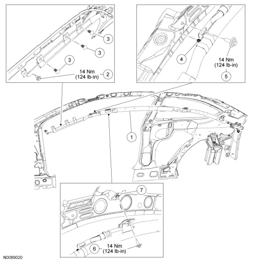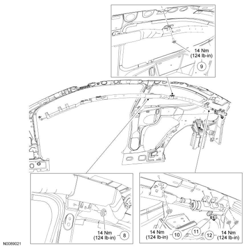 14. Install the headliner. For additional information, refer to Interior Trim and Ornamentation Service and Repair.