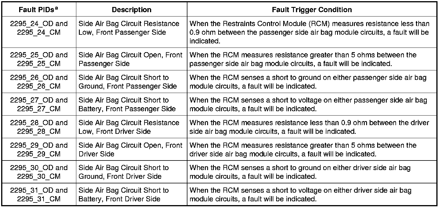a Fault PIDs that end in OD indicate an on-demand status and are associated with on-demand DTC B2295. Fault PIDs that end in CM indicate continuous memory status and are associated with continuous DTC B2295.