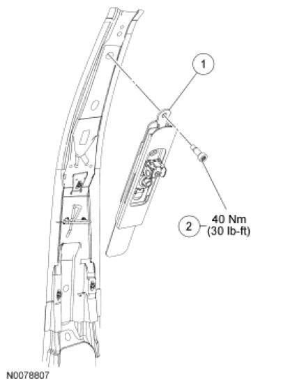 1. Remove the B-pillar trim panel(s). For additional information, refer to B-Pillar Trim Panel - 2-Door or B-Pillar Trim Panel - 4-Door in Interior Trim and Ornamentation B-Pillar Trim Panel - 2-Door and B-Pillar Trim Panel - 4-Door.