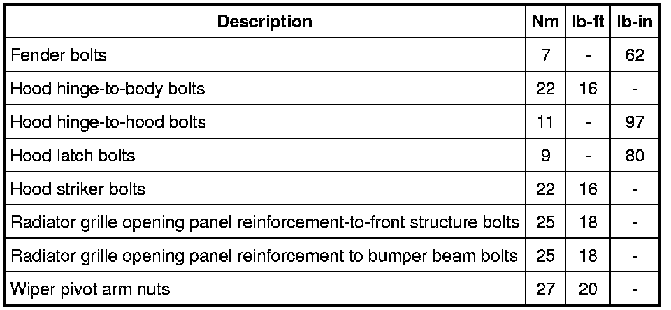 Torque Specifications