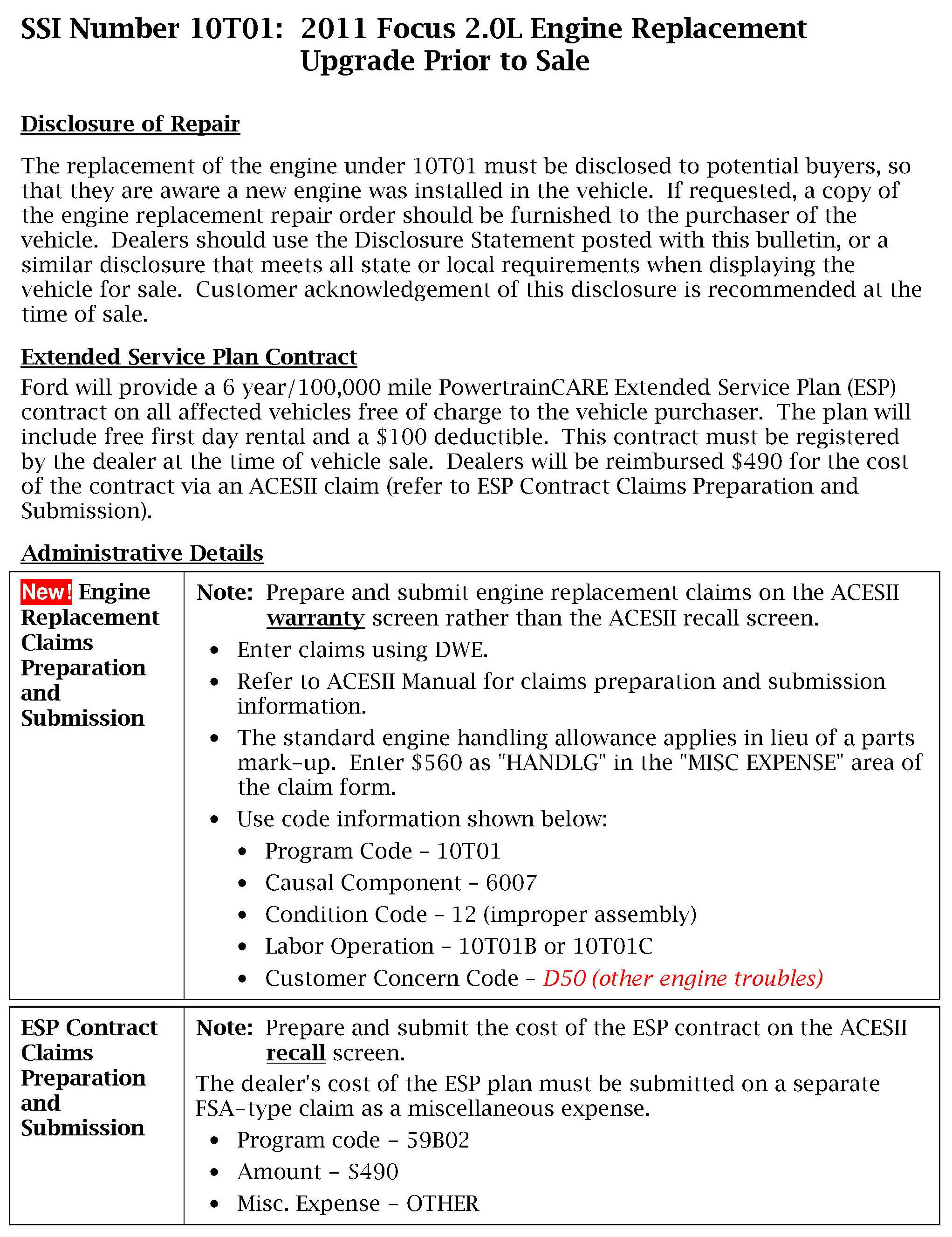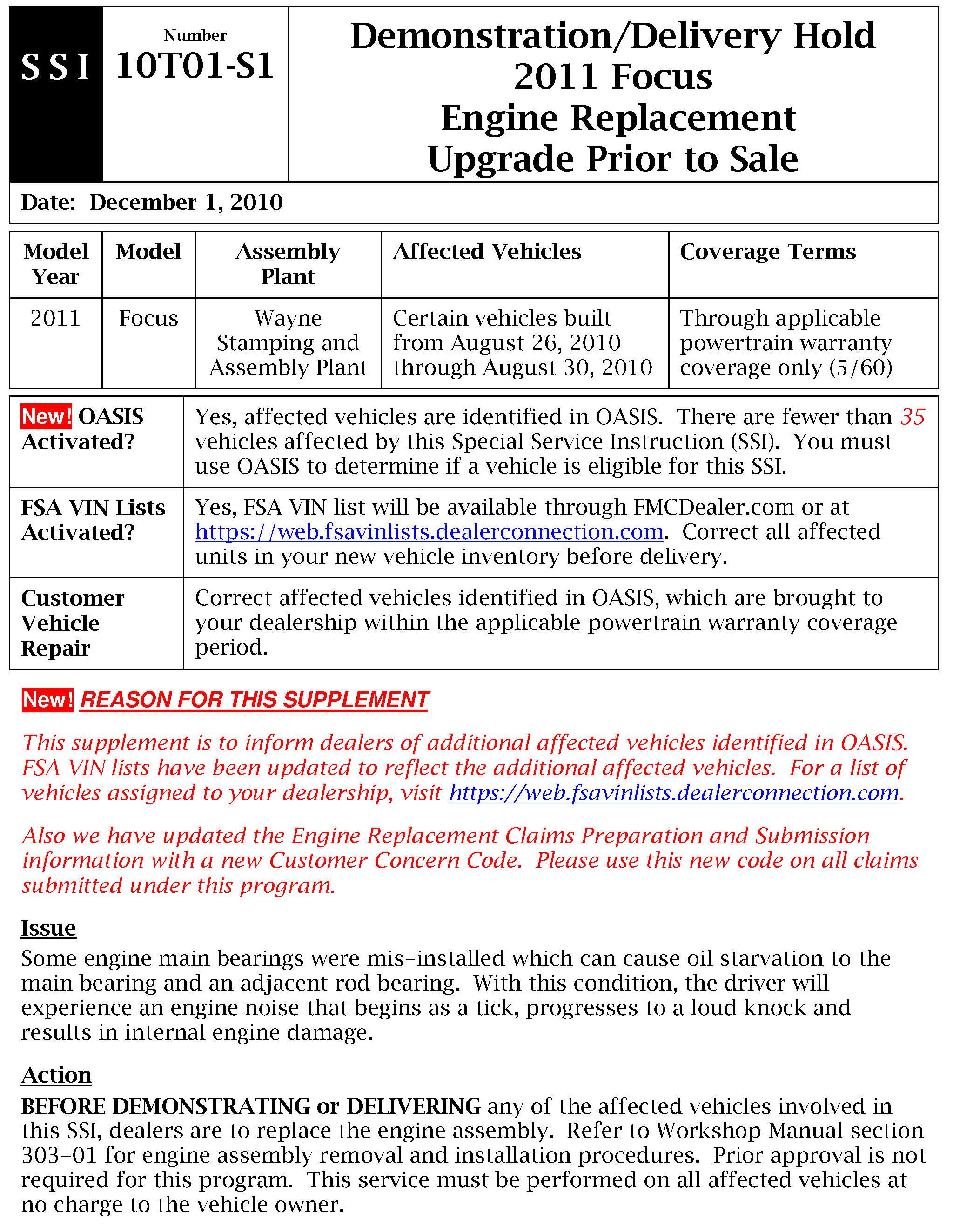 Campaign - Engine Replacement/Main Bearing Mis-Alignment