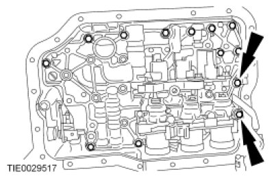 1. Remove the transmission fluid pan. For additional information, refer to Transmission Fluid Pan Service and Repair.