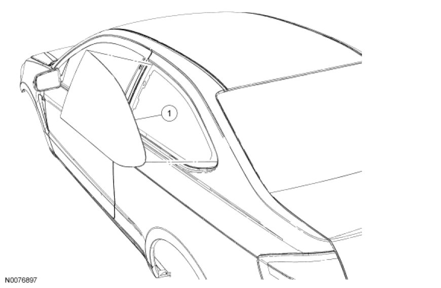 NOTICE: Before positioning the rear quarter window glass, open vehicle windows to prevent the air pressure of closing doors from affecting the urethane adhesive bond.