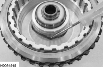 1. Slightly lift up on the direct (3, 5, R) clutch so that the snap ring floats freely.